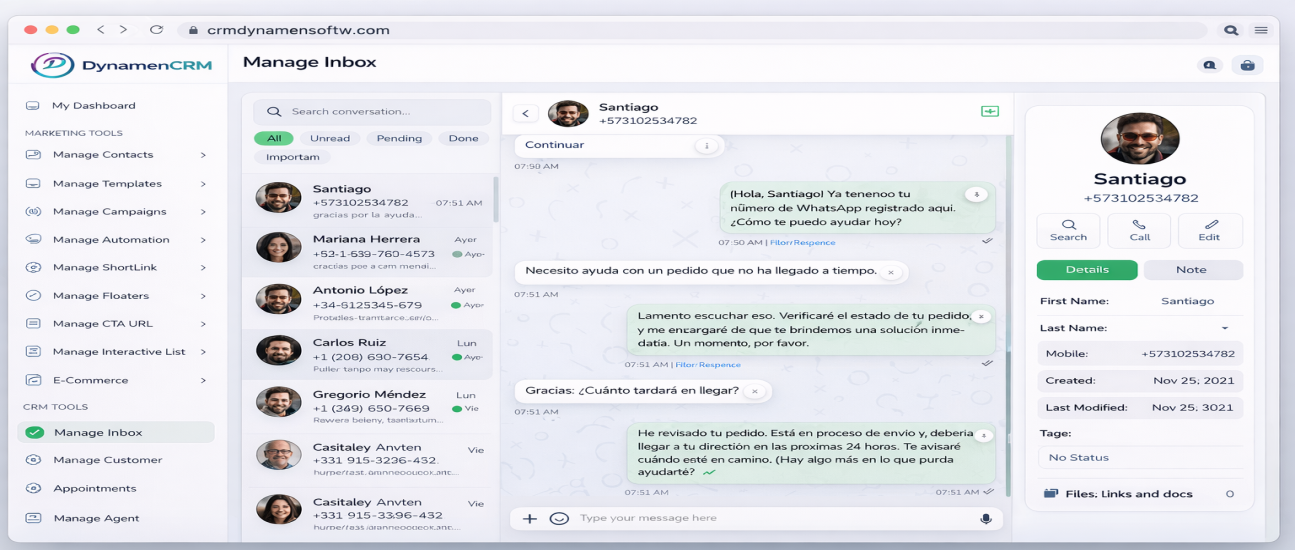 DynamenCRM offers powerful WhatsApp CRM tools, message automation, contact segmentation, a multi-agent inbox, campaign analytics, and advanced lead tracking.